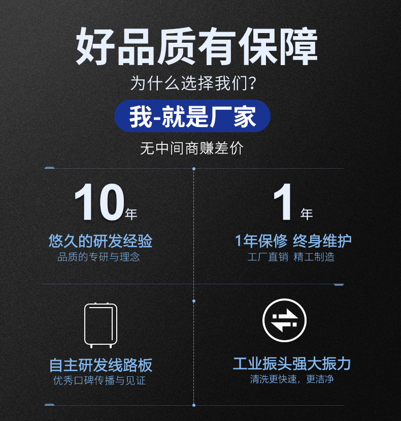 • 升級(jí)換能器:采用工業(yè)震頭,力度強(qiáng)勁,性能穩(wěn)定;