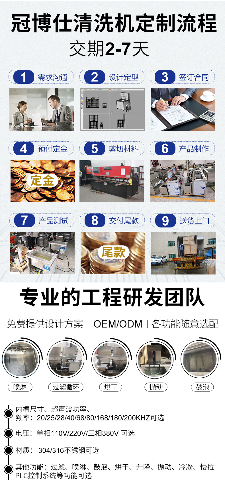 • 其他功能:過濾、噴淋、鼓泡、烘干、升降、拋動、冷凝、慢拉、PLC控制系統等功能