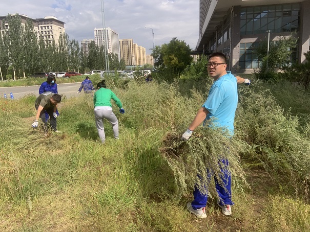 活動中,大家齊心協(xié)力、團結(jié)協(xié)作,采取手拔蒿草的方式,對站場進站口南側(cè)綠化帶區(qū)域的蒿草進行了集中清理,同時做到即清即運,防止草籽散落導致再次生長。