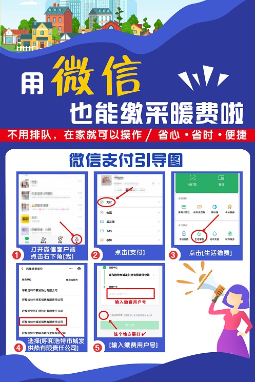 目前,集團的子公司城發供熱、富泰熱力、燃氣熱力全部開通了線上繳費業務。城發供熱今年又增加了在微信支付中生活繳費模塊下繳納熱費,這也是城發供熱繼在微信城市服務模塊下繳納熱費和微信網上營業廳繳納熱費之后,推出的利用微信繳費的又一渠道。
