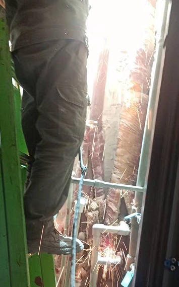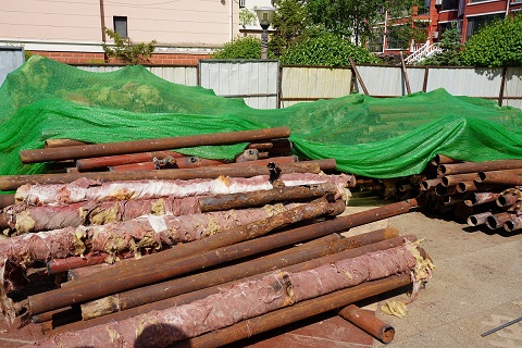 5月17日,筆者來(lái)到開(kāi)天花園小區(qū)的供熱二次管網(wǎng)改造施工現(xiàn)場(chǎng)。在高層單元樓的管道井里,工人正在狹窄的空間里作業(yè),將單元樓道內(nèi)的立管進(jìn)行切割拆除。在施工材料現(xiàn)場(chǎng),西北角堆滿(mǎn)了拆除下來(lái)的地溝管,部分管道腐蝕嚴(yán)重,布滿(mǎn)了密密麻麻的窟窿眼兒;東北角堆放了新到的管材,工人們正在進(jìn)行單元立管外表的打磨工作,打磨完成后再進(jìn)行粉刷兩遍防腐漆。