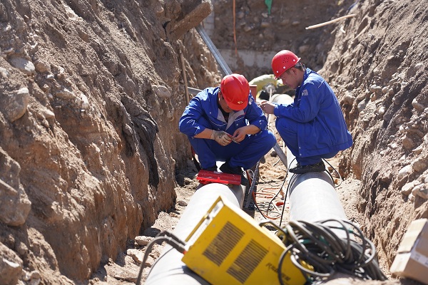 身后有兩個(gè)穿著藍(lán)色工衣的工人正在管道上貼著什么東西,正當(dāng)筆者準(zhǔn)備走近一看究竟時(shí),被他們厲聲喝住。"前方機(jī)器工作中,有輻射,人員不能靠近!"聽(tīng)到這話,筆者不自主的向后退了兩步。待他們關(guān)閉機(jī)器,得到允許后,筆者才上前去了解了這兩個(gè)"神秘人"。原來(lái),他們是負(fù)責(zé)給管線做探傷檢測(cè)的。所謂的探傷檢測(cè),就是利用X射線可以穿透物質(zhì)和在物質(zhì)中具有衰減的特性,發(fā)現(xiàn)缺陷的一種無(wú)損檢測(cè)方法。剛才他們開(kāi)啟的設(shè)備就是X射線機(jī)。筆者笑著打趣道:"那你們就是負(fù)責(zé)給管道拍X光片的管道醫(yī)生吧。"