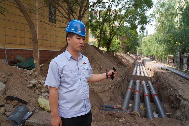 白云偉說,"這段供熱管線下面還有一段天然氣管線。這段管溝長度僅55米多,但施工難度較大,機具僅開挖了表層,其余是人工開挖,人工開挖就進行了三天,55米管溝開挖、鋪設管道就用了一周的工期。"
