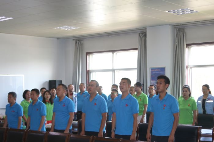 大會在莊嚴的《國歌》聲中拉開帷幕,面對鮮紅的黨旗,由分公司組織委員王艷雄領誓,全體黨員舉起右拳面向黨旗宣誓我志愿加入中國共產黨,擁護黨的綱領,遵守黨的章程,重溫入黨誓詞使全體黨員再一次受到了心靈的洗禮、思想的震撼。