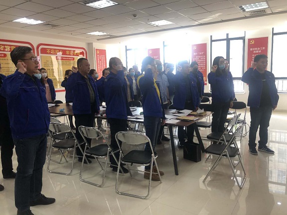會上,表決通過了預備黨員厚瀟雅同志轉正的事宜黨支部書記云永泉同志為4月份過政治生日的張宇、張飛飛、閆辛榮三位同志發放了政治生日卡,表達了黨組織的親切問候,并要求他們不忘初心、牢記使命,踐行入黨誓詞和為人民服務宗旨,永葆黨員政治本色,在防疫常態化的情況下做好本職工作。閆辛榮同志帶領大家重溫了入黨誓詞。