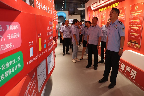 活動中,大家依次參觀了邊防檢查總站廉政教育長廊和展廳,集體觀看了自十八大以來,以習近平為核心的黨中央從嚴治黨和防腐治腐的宣傳教育片。全面回顧了中國共產黨的反腐歷程,學習了發生在我們身邊讓人觸目驚心的一個個反面案例。尤其展廳最后通過的“萬丈深淵路”,讓每個走在上面的黨員干部都身臨其境地感到貪腐之后家庭、事業、人生統統地崩山裂、萬念俱灰的感覺,再次起到了敲響警鐘、拒腐防變、正風肅紀的作用。