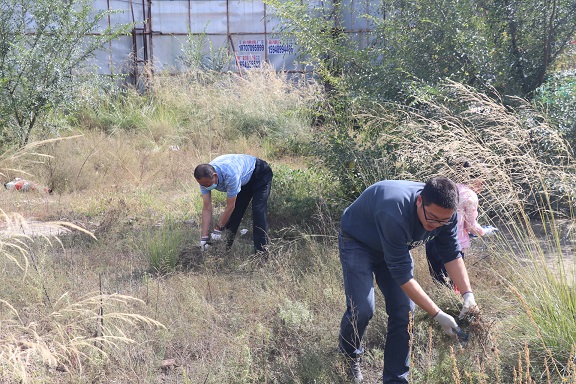 活動中,大家在張永同志的帶領(lǐng)下進(jìn)行地毯式清除,大家戴手套、口罩、全副武裝,采取連根拔出和收割的方式徹底消除蒿粉傳播漂浮,切斷蒿粉過敏原并將拔出的蒿草及時(shí)清運(yùn),以免草籽散落再次生長。