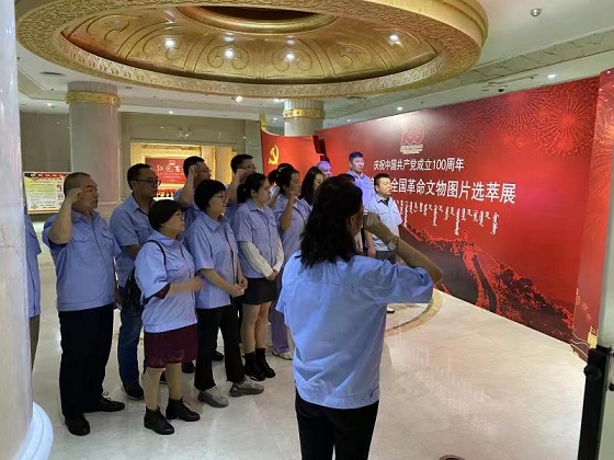 在博物院二樓展廳內(nèi),黨支部書記郭依群同志率先帶領(lǐng)大家重溫入黨誓詞,銘記初心使命,并齊聲高唱《沒有共產(chǎn)黨就沒有新中國(guó)》紅歌,表達(dá)愛國(guó)愛黨的熱烈情懷。隨后在講解員的帶領(lǐng)下大家認(rèn)真聆聽學(xué)習(xí)了革命先輩的光輝事跡,一幅幅生動(dòng)的照片、一件件厚重的實(shí)物、一個(gè)個(gè)感人的故事,無不再現(xiàn)了中國(guó)共產(chǎn)黨人百年奮斗的不屈精神和輝煌成就。