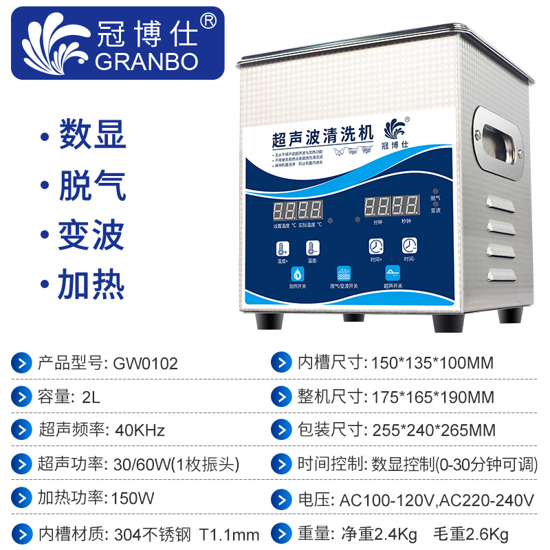 冠博仕GW0102超聲波清洗機(jī)|2L/60W|變波脫氣帶加熱